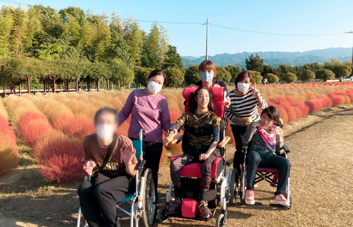多くの出会いや体験の中で、やりがい・生きがいを持って生活できるよう、外出の機会を増やすなど、「楽しい」や「やったー」がある過ごし方を心がけ、自分の世界を広げ、成長していける機会を提供します。