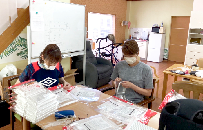ハンカチタオルのラッピングや、フードパックの袋入れの内職です。