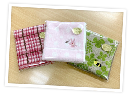 ハンカチタオルのラッピングや、フードパックの袋入れの内職です。